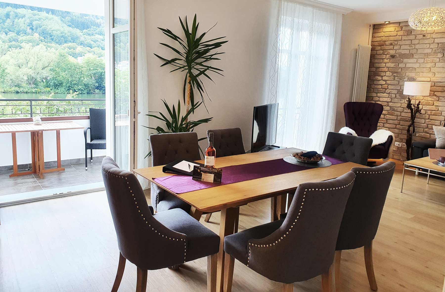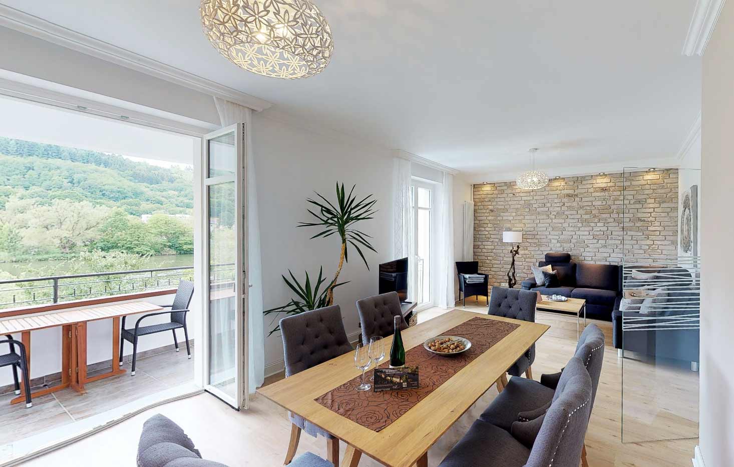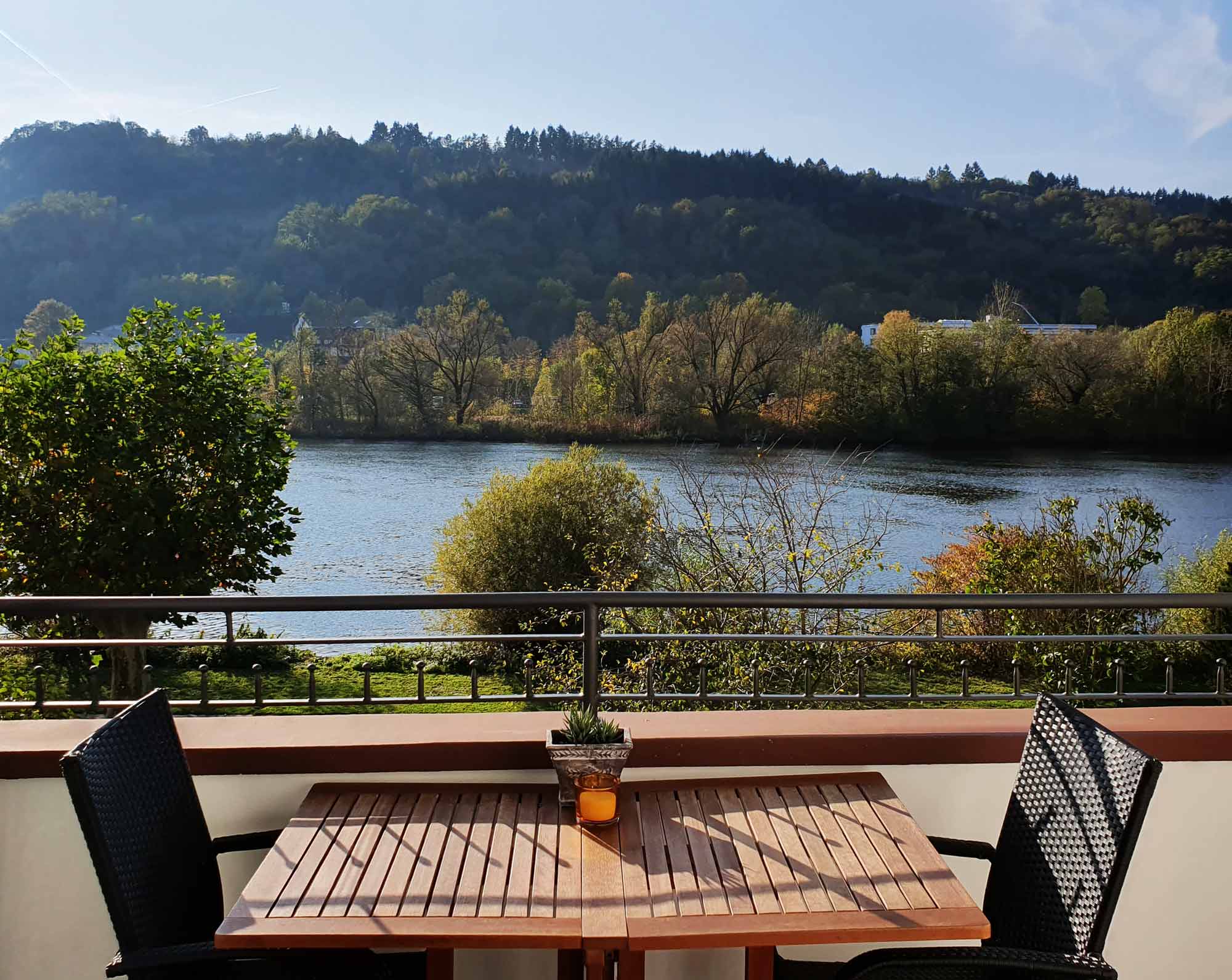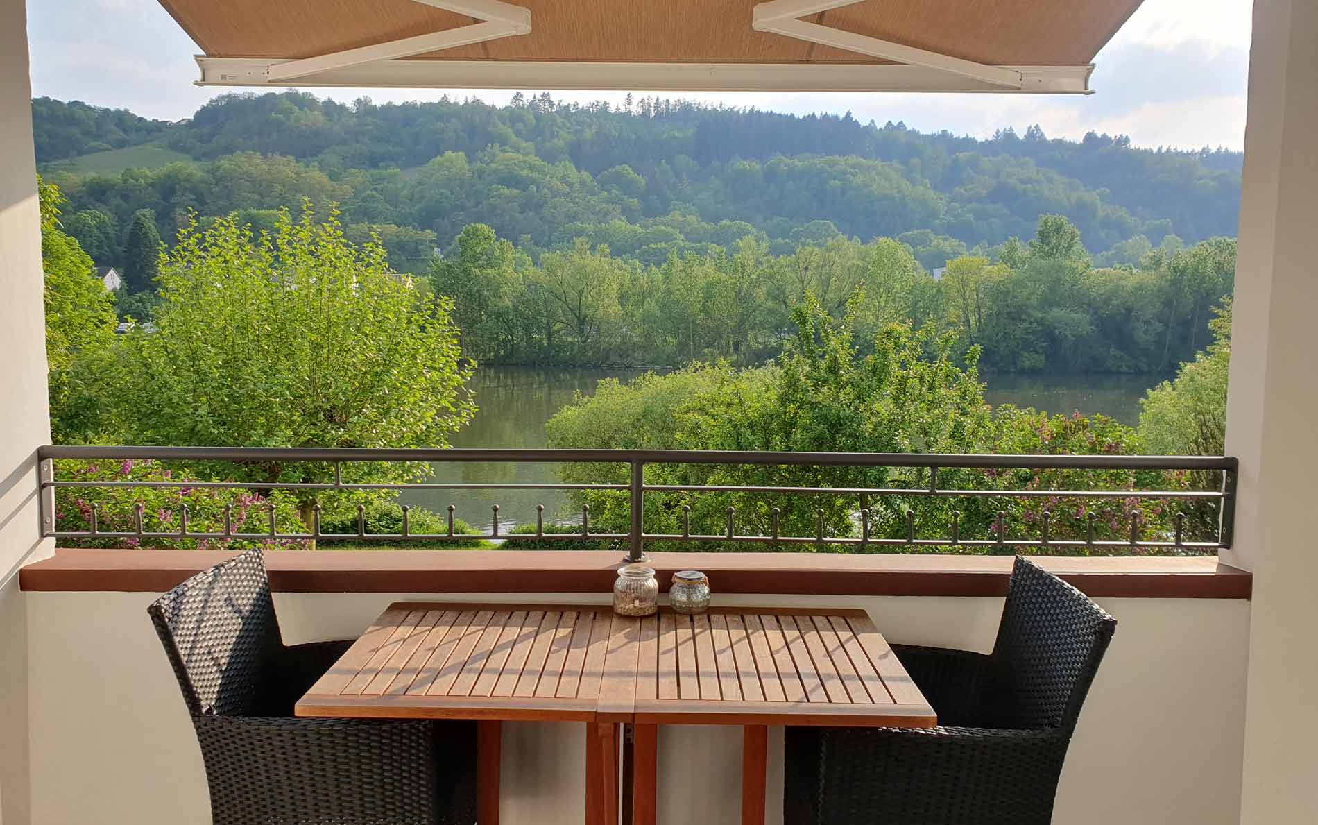 Exklusive Ferienwohnungen mit überdachtem Balkon und Moselblick.